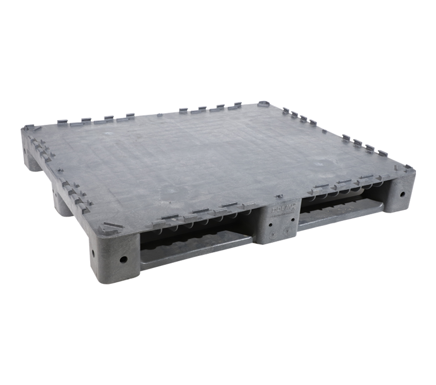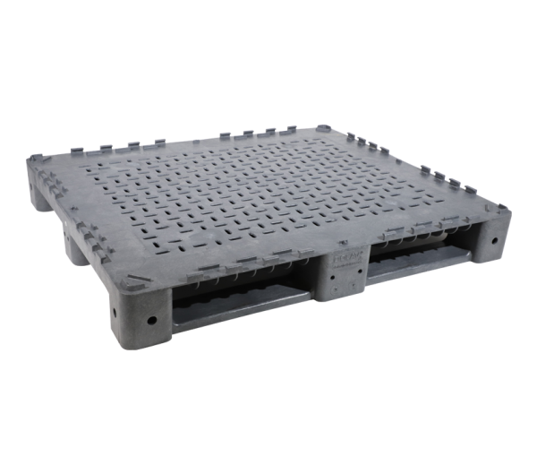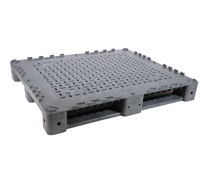 The KitBin pallet with hooks allows for bin walls to lock into place, giving you a strong and durable container while offering space savings when not in use.